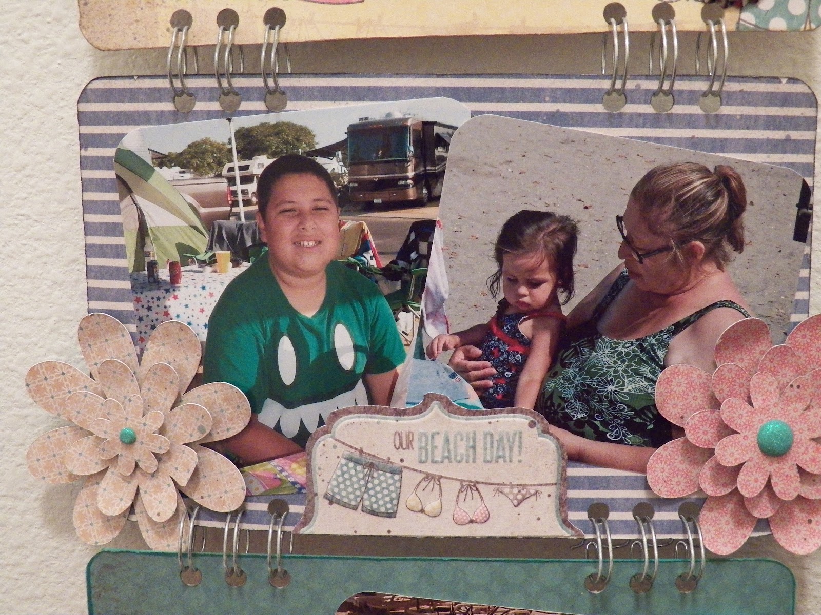 All the flowers were made with paper from the collection and dimensional stickers and tied together with one of those beautiful aqua glitter brads. So I hope you like my project, and more importantly, I know my mom will love this since it is her and her grand kids.
